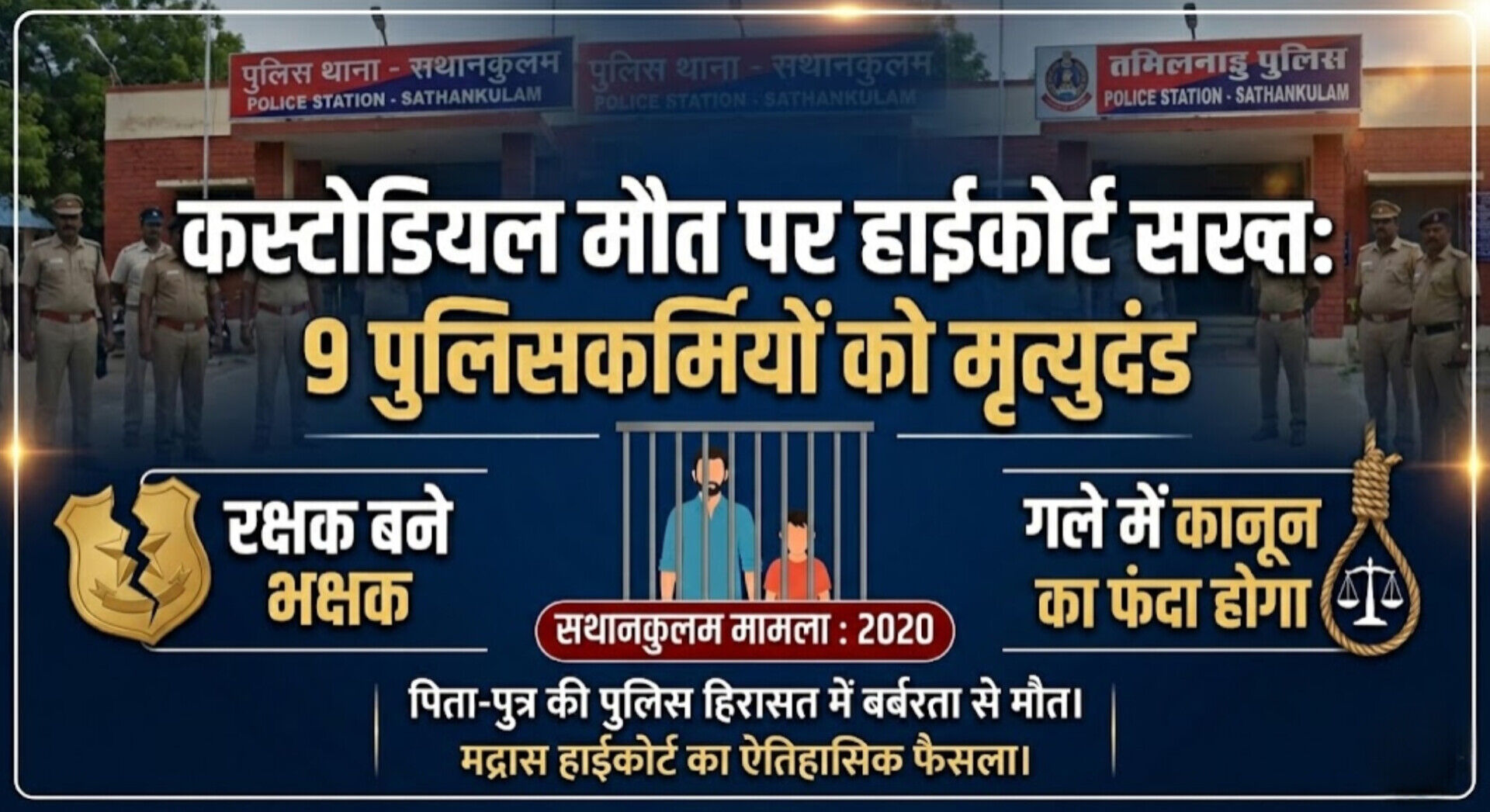 सथानकुलम कस्टोडियल डेथ केस में मद्रास हाईकोर्ट ने 9 पुलिसकर्मियों को मृत्युदंड दिया। अदालत ने इसे अत्यंत जघन्य अपराध बताया।