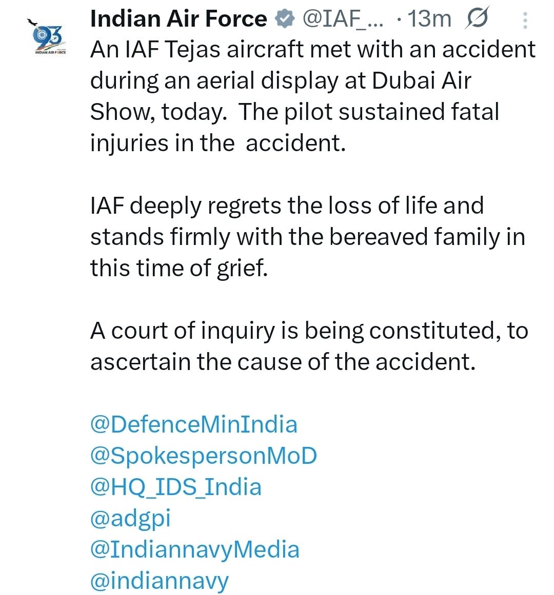 बता दें, दुबई एयर शो दुनिया के सबसे बड़े एयरोस्पेस आयोजनों में गिना जाता है। फिलहाल सभी की निगाहें कोर्ट ऑफ इन्क्वायरी पर होंगी। उम्मीद यही है कि सच सामने आएगा और भविष्य में ऐसी त्रासदी दोबारा न हो।